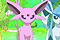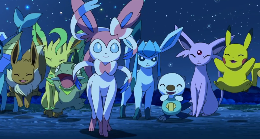 Short 25 - Eevee & Friends In this adorable short, Pikachu and friends follow Sylveon to a place where all of the Eevee evolutions live together. Espeon is found looking at her own reflection in a pond, "absorbed in her own appearance as always." Pikachu and the others fall into the pool and Espeon uses her psychic powers to stop the splash from hitting her. Espeon then joins Pikachu and friends with the other Eevee evolutions for a slumber party full of fun!
